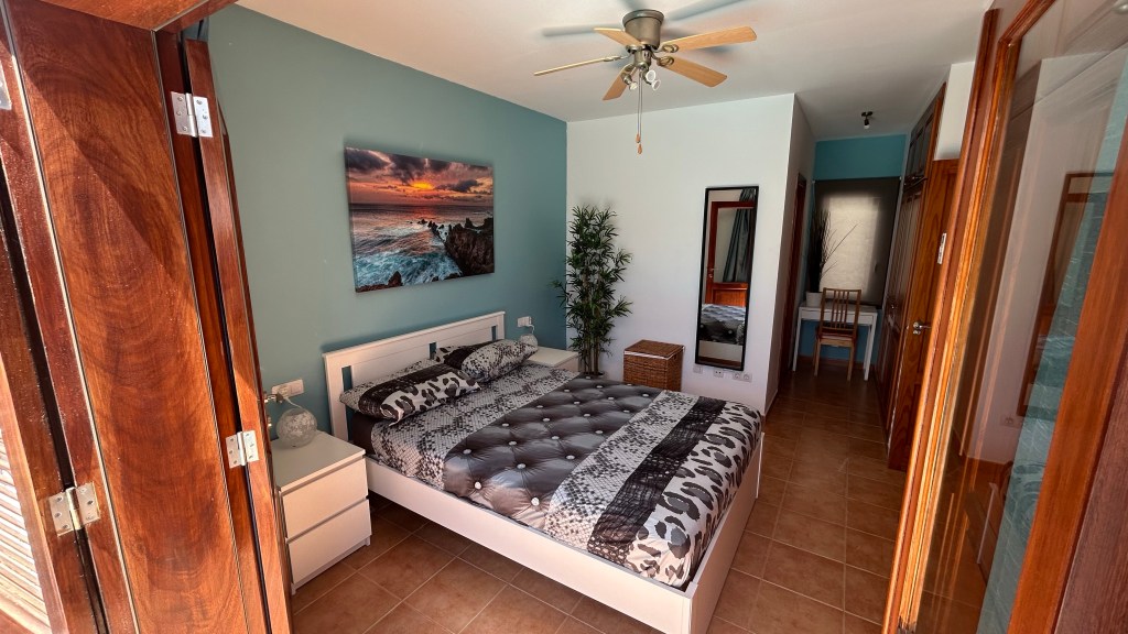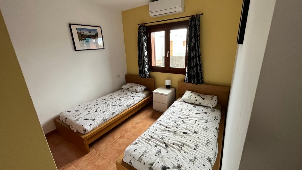 Villa Citrus tiene tres dormitorios con climatizadory dos baños. El dormitorio doble con baño en suite, está en un lado de la villa, mientras que los dos dormitorios individuales con el segundo cuarto de baño están en el otro lado. El salón, el comedor y la cocina están en el centro. El dormitorio doble tiene ventilador de techo y puertas francesas a la terraza y la piscina. Todos los dormitorios tienen mucho espacio de armario y ventanas de persiana para la ventilación. Hay cuatro ventiladores en los dormitorios. El salón tiene un techo alto y capta la luz natural. El comedor tiene una gran mesa con seis sillas. El salón tiene dos cómodos sofás de 2 y 3 plazas, TV de pantalla plana de 56″, y CromeCast.